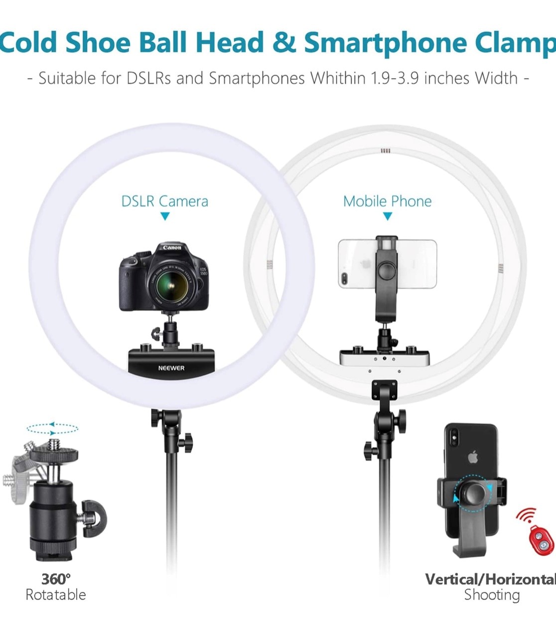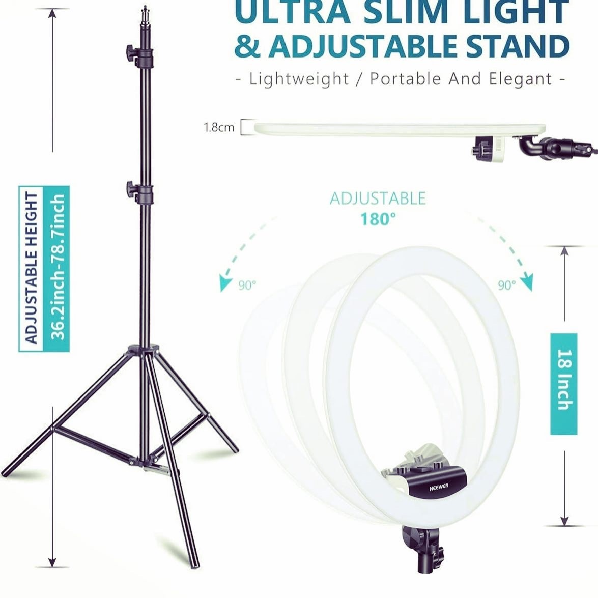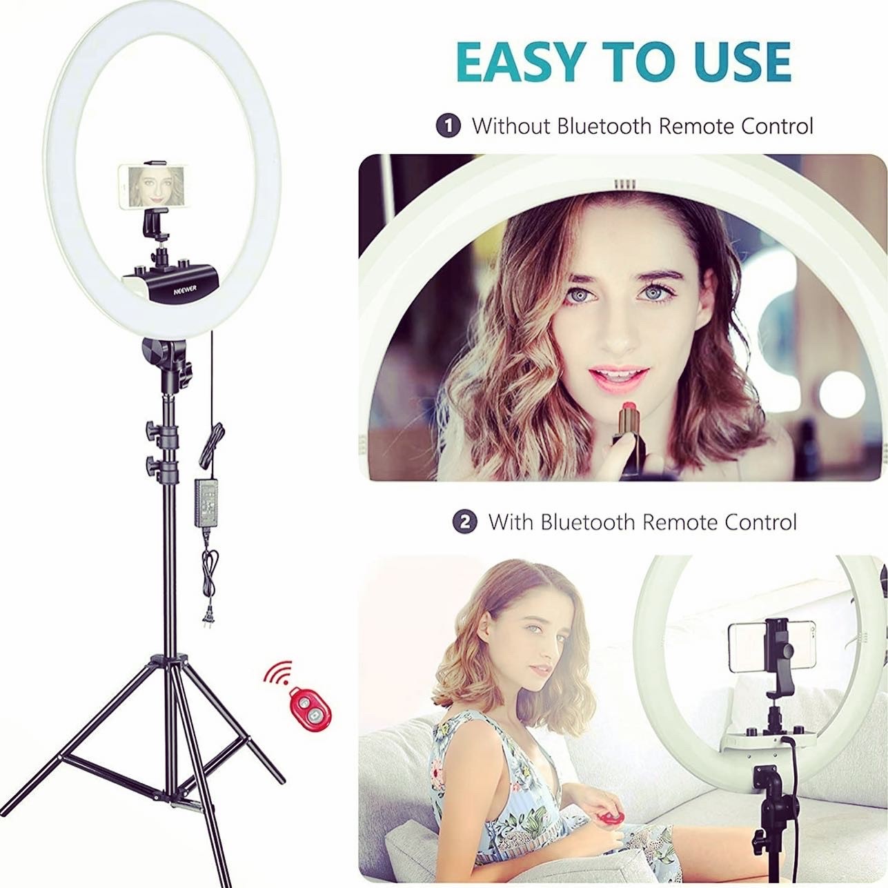RING LIGHT 18pouces, anneau lumineux LED avec trépied, télécommande Bluetooth , rotation 360°très puissant avec la possibilités de diminuer l’intensité de la lumière !