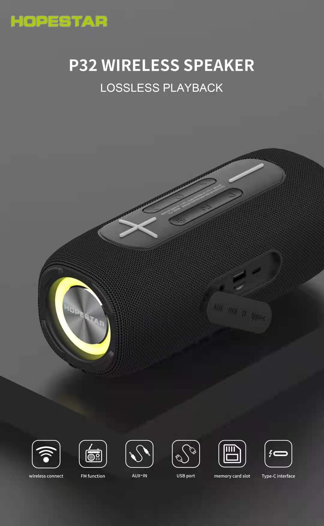 Enceinte Bluetooth Hopestar P32 puissance 35 W autonomie 4H avec le son maximum water résistante entrée USB et carte SD ainsi qu'un connecteur auxiliaire Jack